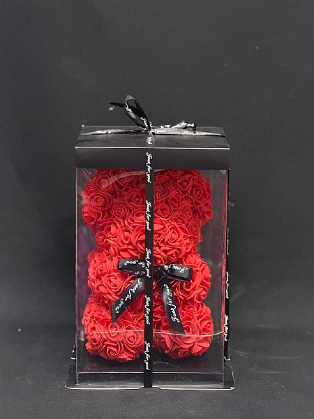 Kutuda Yapay Güllerden Hazırlanmış Ayıcık